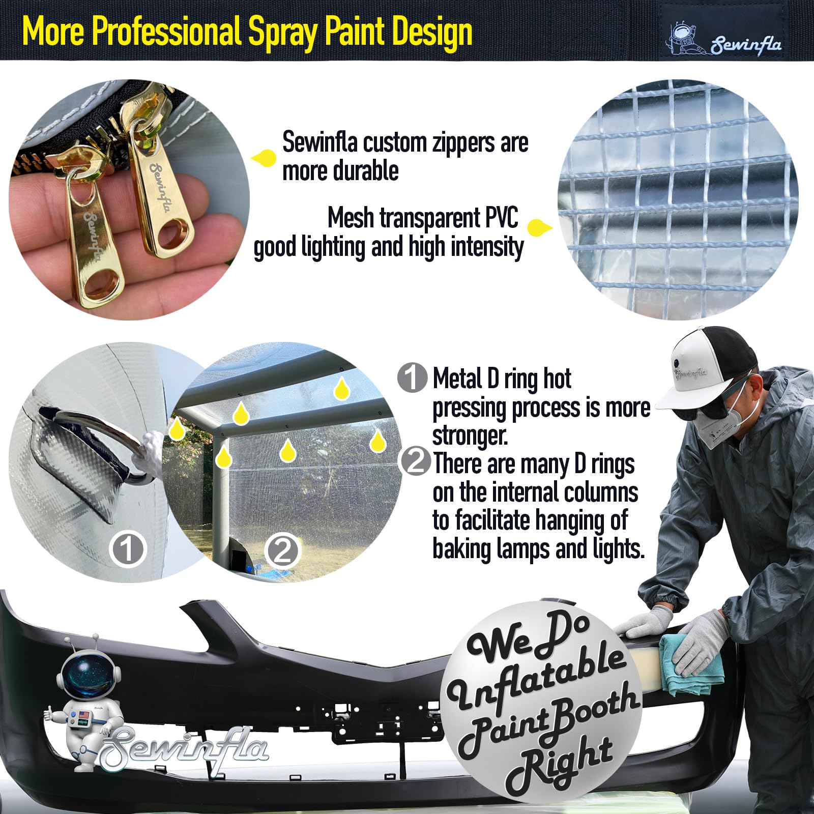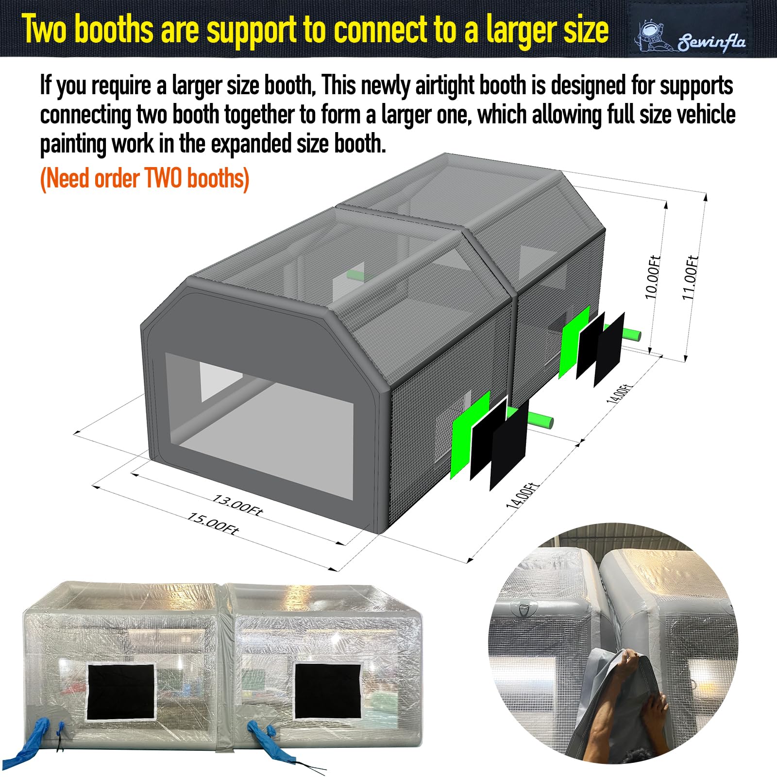 Sewinfla Airtight Waterproof Paint Booth 28x15x11FT with 2 Blowers (950W+950W)